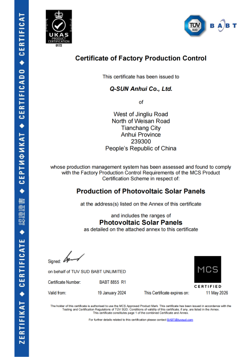 Established in 2014, Bastions Energy Group operates its international marketing center in Nanjing, while its photovoltaic modules are produced at Q-Sun Group’s manufacturing facilities in Tianchang and Yancheng. Backed by more than a decade of experience in photovoltaic module research, development, and production, Bastions Energy delivers over 4 GW of high-efficiency solar modules annually to nearly one million users in more than 50 countries and regions, continuously generating clean electricity and long-term economic value for customers around the world.