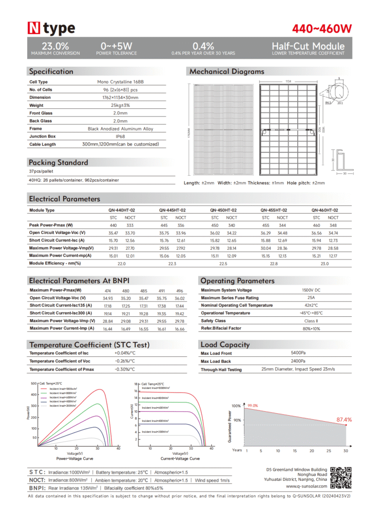 Power Output: 440–460W with 0 ~ +5W positive power tolerance