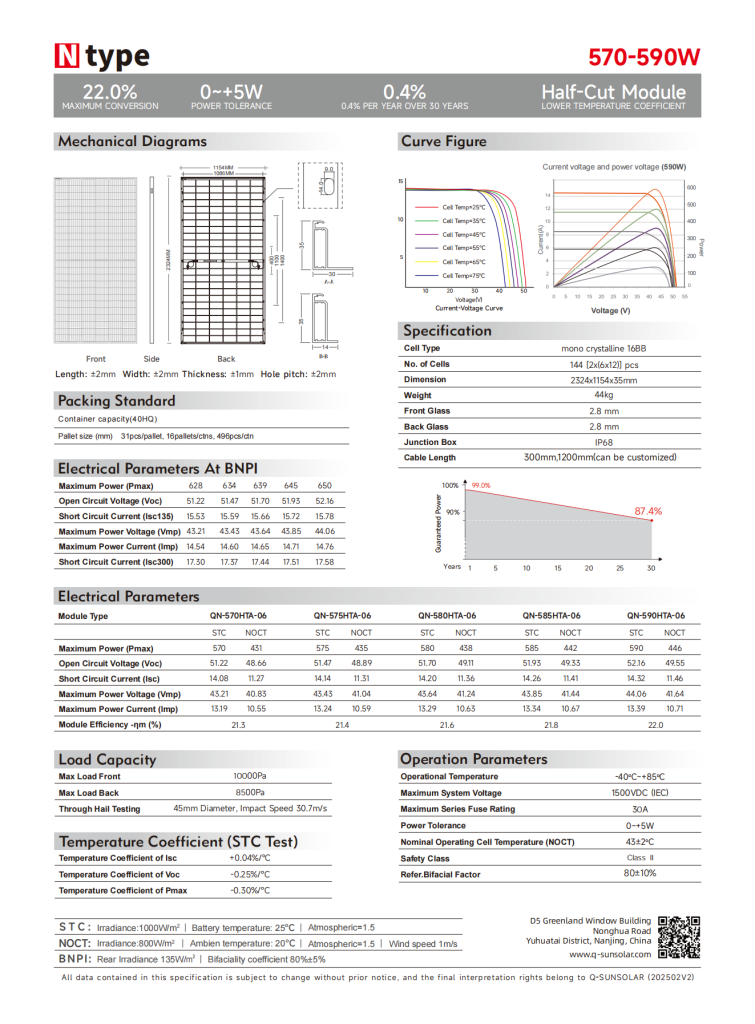 Power Output: 570–590W with 0 ~ +5W positive power tolerance