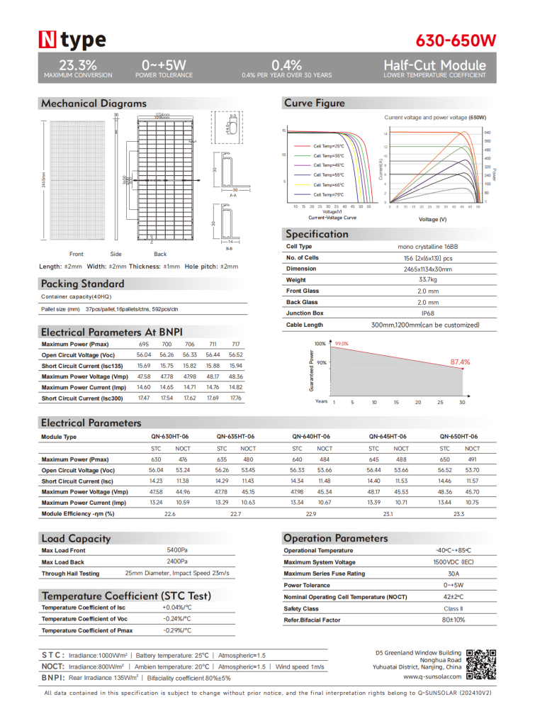 Power Output: 630–650W with 0 ~ +5W positive power tolerance